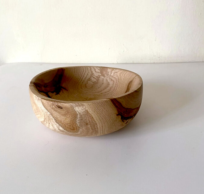 クリの木を削り出して作った、両手に収まるサイズのウッドボウル。