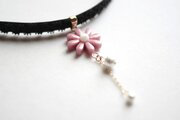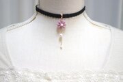 中心の花芯とコットンパールの光沢のある輝きが上品なチョーカー。