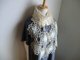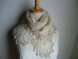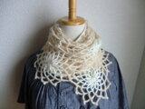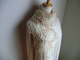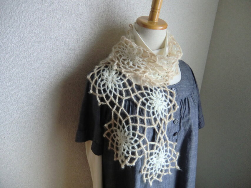 ふわふわのやわらかなベビーアルパカメインの糸を使って編んだモチーフストールです。
