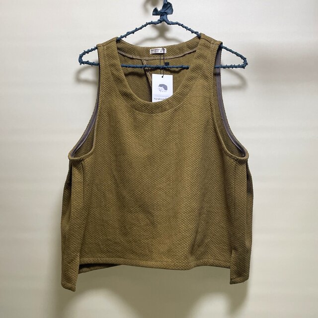 ★三角スリットベスト【コットンリネン刺し子】からし◆フリーサイズ