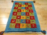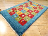 商品名: ペルシャ ギャッベ 青色 パネル柄 生命の木 ヤギ 羊 RJ13592