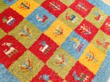 シラーズ地方の遊牧民(カシュガイ族)が、羊やテント、動物や自然等をモチーフに、自分のインスピレーションで織り描く素朴な手織り絨毯です。どれも手作業のため、基本的に、世界に一枚しかない一点ものです。