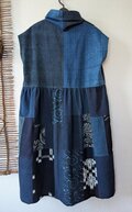 数種類の藍染、型染をバランスよく配色し、刺し子をしました。