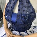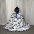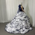 豪華!カラードレス ネイビー ホルターネック キラキラスパンコール ラッフルフリル プリンセスライン クラシカル 前撮り