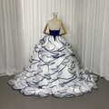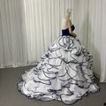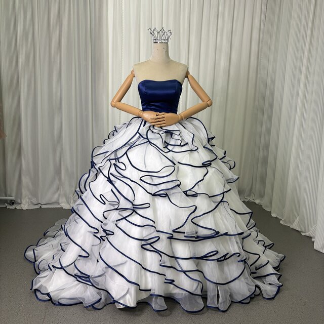上品!カラードレス ネイビー ベアトップ ラッフルフリル プリンセスライン クラシカル 前撮り