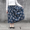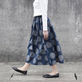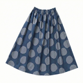 ★新作 コットンリネン・バブルドット ギャザースカート( ネイビー × シルバーグレイ )リネン 麻 綿 ロング ポケット