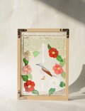 上の部分、ツバキを切り絵でアールデコっぽくしてみました。