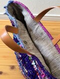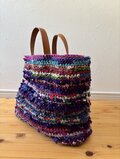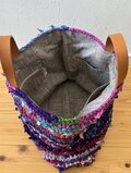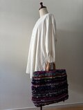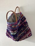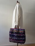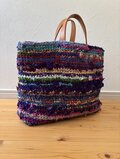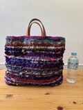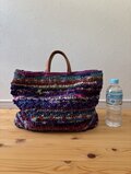 古布を裂いてラメ入りの糸と編み込んだ一点もののトートバッグです