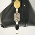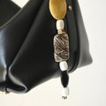 シンプルなバッグにチャームをつけたいけど、大人っぽくて高級感と遊び心があるデザインのチャームは意外と少ないなぁと思って、付けるだけでバッグが高見えするチャームを作りました。天然石ジャスパーの存在感と、アクセントとして使っているワッシャーやネジなどの金具が、アートオブジェのように調和したデザインです。