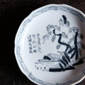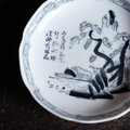 黒染付で素敵◆漢文と風景。瀬戸焼 黒染付印判小皿 骨董・antiques 古民家 古道具 大正~昭和初期