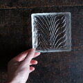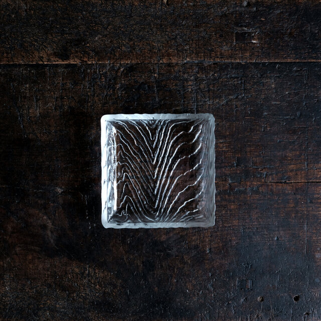 木の幹のような文様◆クリスタルガラス正方皿 曇りガラス 清涼感 暮らしに。 昭和後期