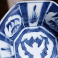 見込みは陽刻◆竹と雀。伊万里 鳥文染付八角鉢 骨董・antiques 丁寧な暮らしに。古民家 古美術 江戸期