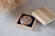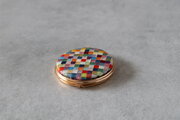 国産絹糸の絽ざしコンパクトミラー 市松文様 手刺繍 和柄 桐箱入り ギフト