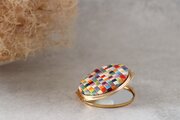 小さな升目の中に色を構成することで、絹の光沢と色の奥行きが際立ちます。