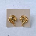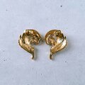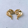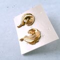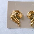 1886年アメリカのニューヨークにて小さな香水会社を創業、1971年に本格的にコスチュームジュエリーの製作を開始したAvon(エイボン)の1990年に販売された“precious plume”のゴールドメタルのスワール状にデザインされた羽根にクリアラインストーンが1粒あしらわれたヴィンテージピアスです。