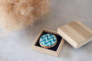 国産絹糸の絽ざしコンパクトミラー 波模様 手刺繍 和柄 桐箱入り ギフト
