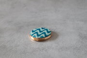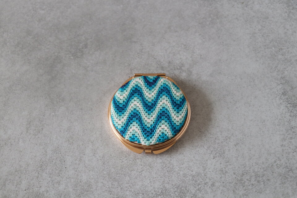 国産絹糸を使用し、伝統刺繍技法 絽ざしで仕立てたさざなみ文様のコンパクトミラーです。