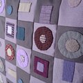 そこに丸や四角のアップリケを縫い付けて繋ぎ合わました。
