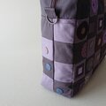 グレーと淡い紫の中厚手木綿を8cmの正方形に切り、