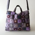 《 モチーフアップリケ2WAYバッグ(Lサイズ/グレー&パープル) 》