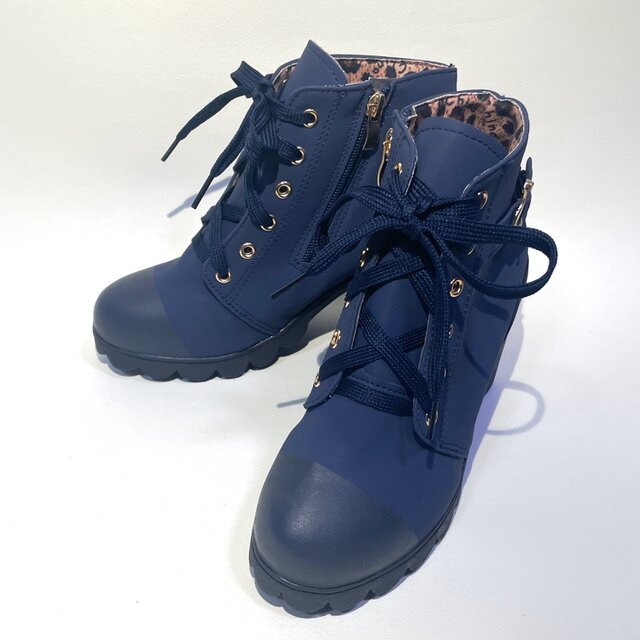 美脚バイカラーサイドジップブーツ (ネイビー x ブラック) 22.5cm〜25.0cm トゥカラー変更可能