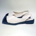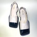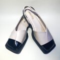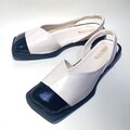 スクエアトゥが個性的♫ モードなバイカラー合皮サンダル (オフホワイトxエナメルブラック) 23.0cm〜24.5cm