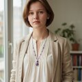 フェミニンな雰囲気ですがいろいろなお洋服と合わせられる便利なネックレスです。