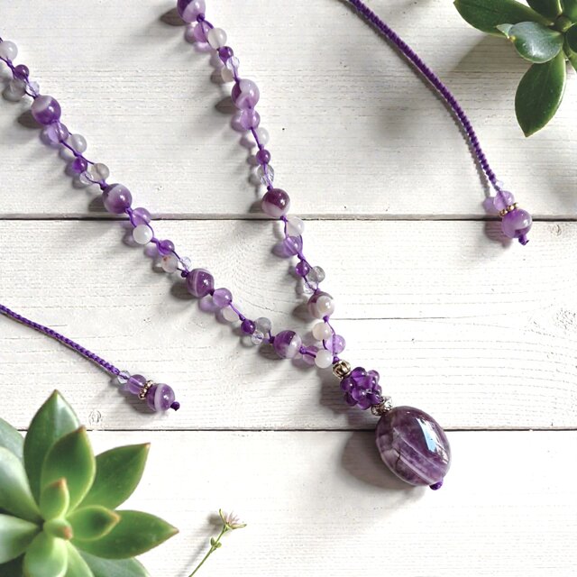 アメジストをメインにした優しいカラーのフリーサイズネックレスです。