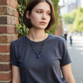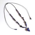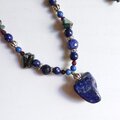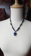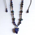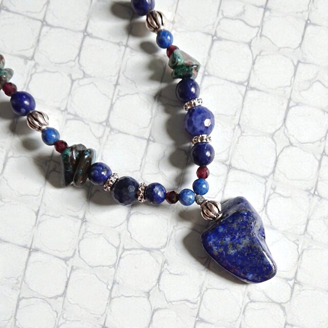 ラピスラズリをはじめとしたブルーの石をミックスした深い青色のフリーサイズネックレスです。