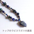 トップのラピスラズリはラフカットのため、天然石の一点物ならではの歪な型になっております。
