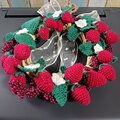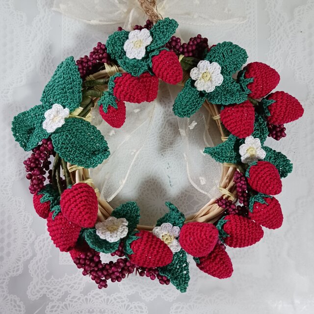 イチゴと木の実のリース ハンドメイド かぎ針編み 壁飾り
