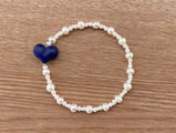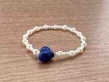 ハート型のラピスラズリを一粒使用し、ホワイトのヴィンテージビーズと淡水パール、間に淡いピンクのヴィンテージビーズを組み合わせたブレスレットです。