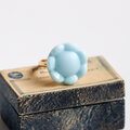 指の節が太くなり新しい指輪を買いました。 海外の素敵なボタン。 本当に綺麗で(サイトの写真よりも)とても嬉しい気持ちです。 希望のサイズを作ってくださった事も嬉しかったです。 また違う色をmatatakiさんで購入したいと思います。