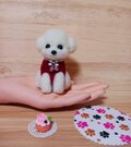 サンタ帽子被った可愛いマルチーズ ケーキ付き 羊毛フェルト可愛らしいサンタさんが到着しました♪