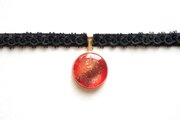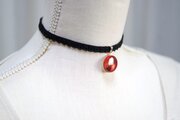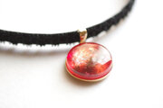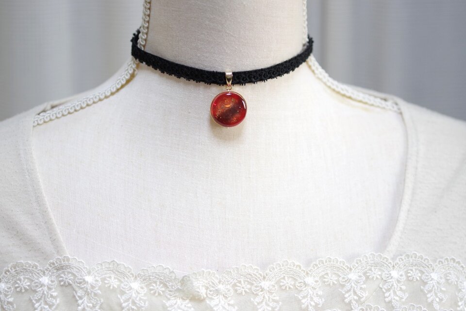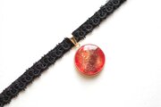 うっとりと魅入ってしまう薔薇色がなんとも華やかなレジンを、ベルベットリボンにタティングレースで装飾を施したチョーカーに仕上げました。
