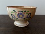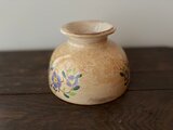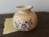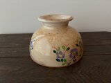 一つひとつ手描きで施された花文様が、古い器ならではの風合いと重なり、唯一無二の表情を見せてくれます。内側には経年による浅いラインが見受けられますが、水漏れはなく、エッジのチップもございません。実用的にもそのままお使いいただけるコンディションです。