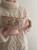 一般的なカフェオレボウルよりもかなり大きく、どんぶりほどもある希少なサイズ感です。なかなか出会うことのない、おおらかな佇まいと手彩色による絵付けもお楽しみください。