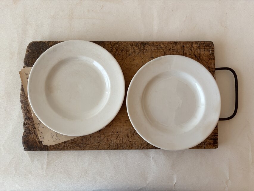 フランスから届いた、白無地のシンプルな小さめのデザートプレートです。