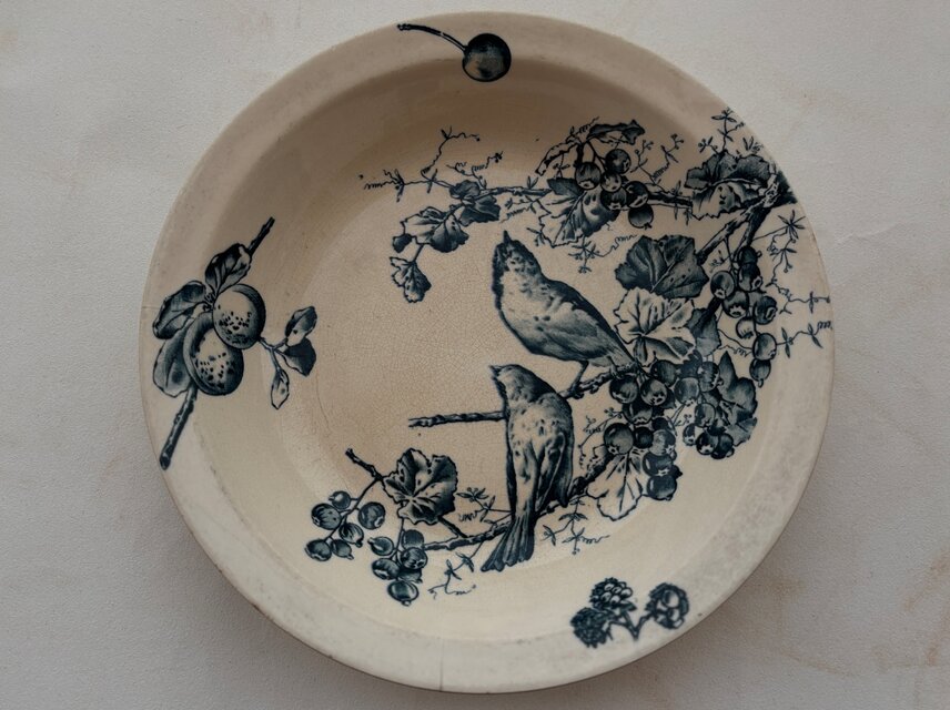 ショワジール・ロワ釜のコマドリと木の実が描かれた幸せなサラダディエが届きました。