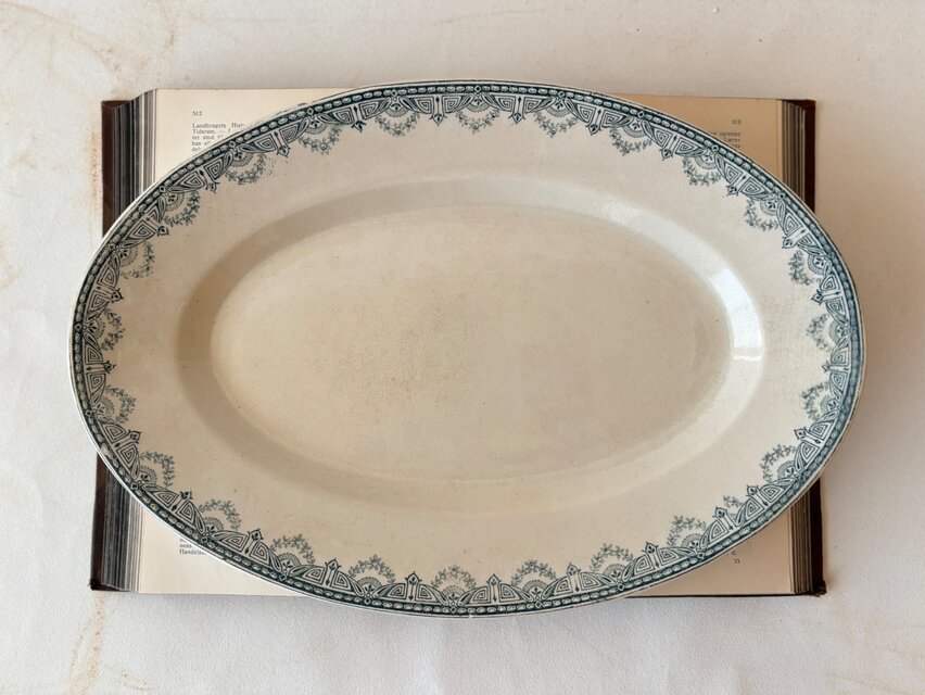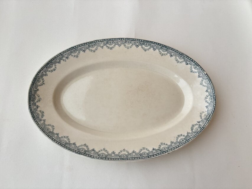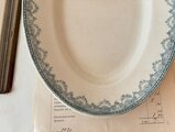 柔らかいアンティークを感じるプレートに、ブルーグリーンで描かれた