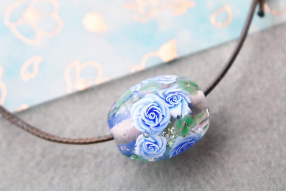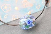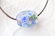 泡を入れた水色×紫の地に、ブルーローズを咲かせました。
