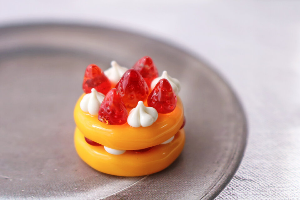 ガラスのミニチュア苺パンケーキ★ガラスのミニチュア洋菓子店★