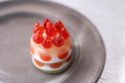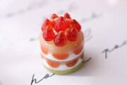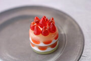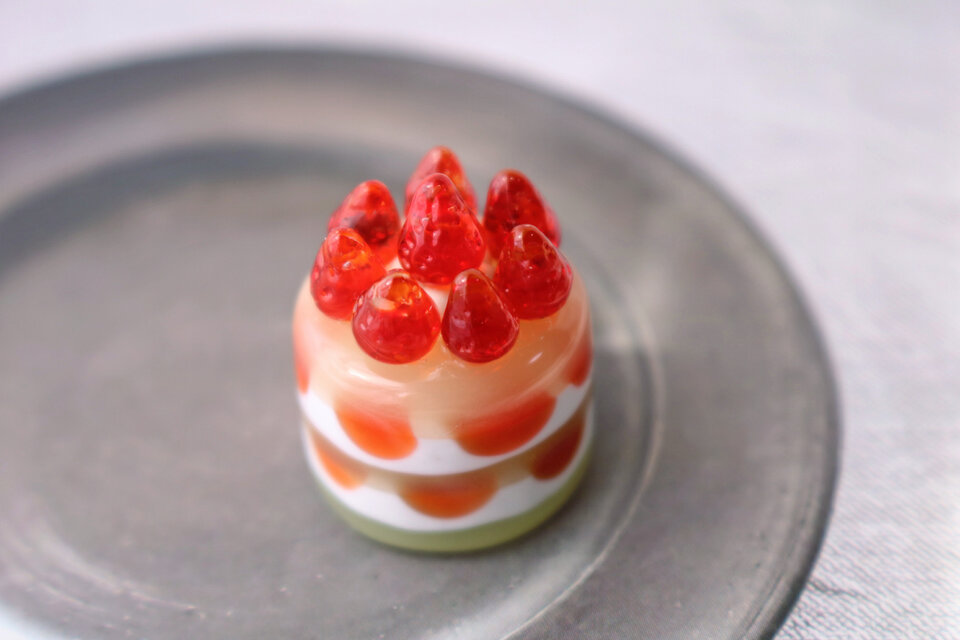 ガラスで制作したミニチュア苺ケーキです。