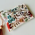 鮮やかな刺繍が施されたテープを使ったポーチです。