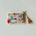 春色 花刺繍+ビーズ刺繍 ミニポーチ (裏地黄色)