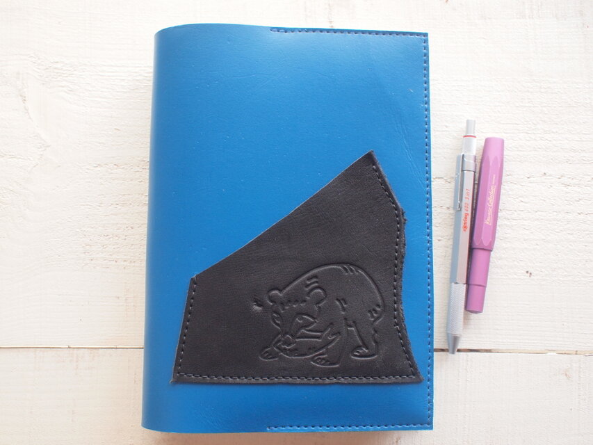 A5サイズ厚い本OK 『木彫り熊』型押しポッケ付き テキスト・ノートカバー