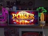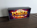 トランプとチップのグラフィックが印刷された長方形のPOKER電飾サイン。