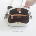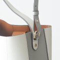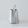 新作 牛革軽量3WAYバケットバッグ【ミルキーホワイトxグレー】仕切り兼ポーチ付・取り外し可|長財布OK|数量限定コラボ