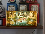 虹鱒のイラストが施されたフライフィッシングの電光看板。