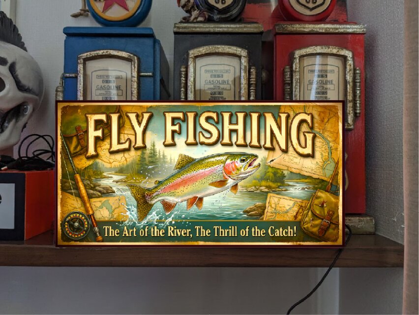 【オーダー無料】フライフッシング レインボー 虹鱒 渓流釣り レトロ 店舗 自宅 照明 ランプ 看板 置物 雑貨 ライトBOX